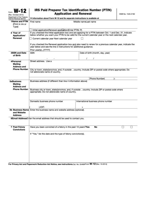 Irs Form W12 . Download or print the 2023 federal (irs paid preparer tax identification number (ptin) application and renewal) (2023) and other. Applying for a ptin online takes about 15 minutes.